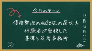 私の相談でも、「今すぐ債務整理をするしかない」という話にはなりませんでした。借金の状況や生活のバランスを見たうえで、「選択肢はある」「時間をかけて考えていい」と言われただけでした。